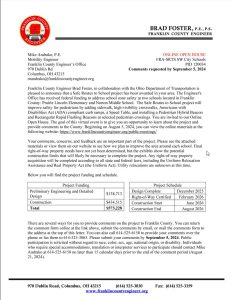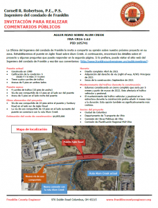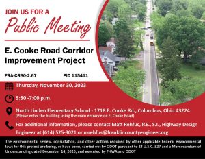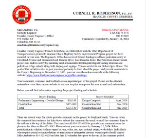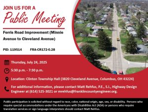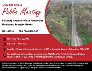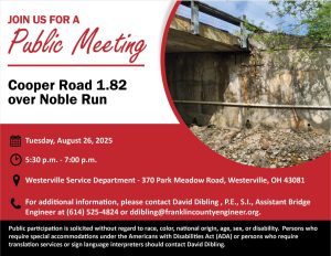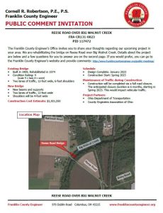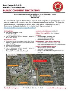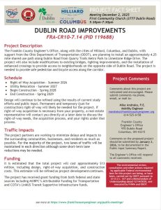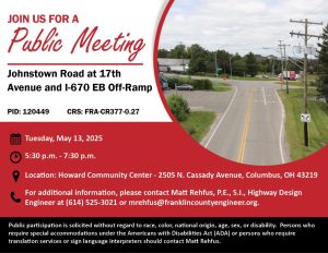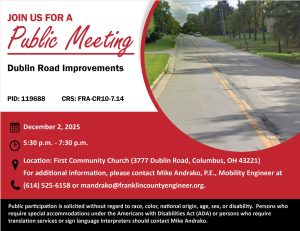 The meeting will be held at 970 Dublin Road, Columbus, Ohio 43215, with a formal presentation. Personnel representing the Franklin County Engineer’s Office will be available to discuss the project and any concerns you may have.