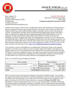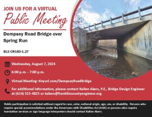 The meeting will be held virtually with a formal presentation. Personnel representing the Franklin County Engineer’s Office will be available to discuss the project and any concerns you may have.