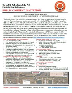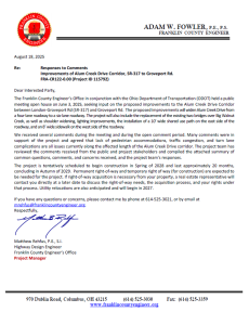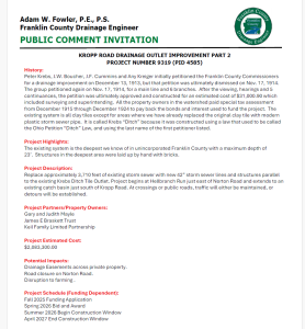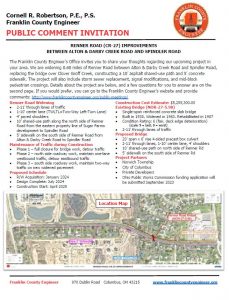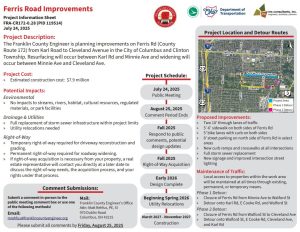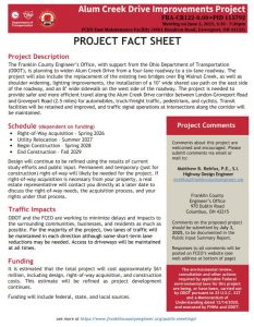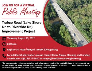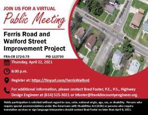 The meeting will be held virtually with a formal presentation. Personnel representing the Franklin County Engineer’s Office will be available to discuss the proposed improvements and any concerns you may have.