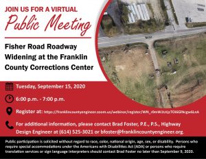 A public meeting will be held on Tuesday, September 15 from 6:00 pm to 7:00 pm to discuss the proposed improvement of Fisher Road at the Franklin County Corrections Center.