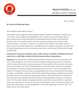 Renner Road Widening (Alton & Darby Creek Road to Spindler Road)