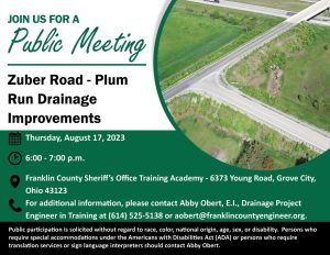A public meeting will be held on Thursday, August 17, 2023, at 6:00 pm to discuss the Zuber Road – Plum