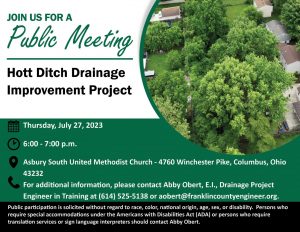 A public meeting will be held on Thursday, July 27, 2023, at 6:00 pm to discuss the Hott Ditch Drainage