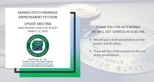 A first hearing will be held on Tuesday, December 6, 2022, at 9:00 A.M. to discuss the ODOT-Argabright Ditch Watershed Drainage Petition.